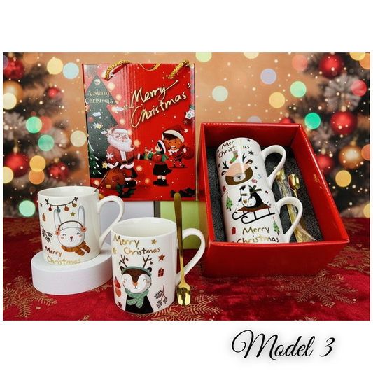 Božićni set od 2 šalice + 2 zlatne žličice – poklon pakiranje
